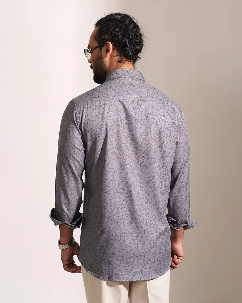 The premium cotton mixed fabric offers a soft touch and excellent breathability, ensuring you stay comfortable throughout the day. The stylish grey color provides a versatile base, beautifully complemented by the distinctive all-over print, making this shirt a standout piece in any wardrobe. The classic full sleeve design adds to its versatility, perfect for both casual and smart-casual occasions.
