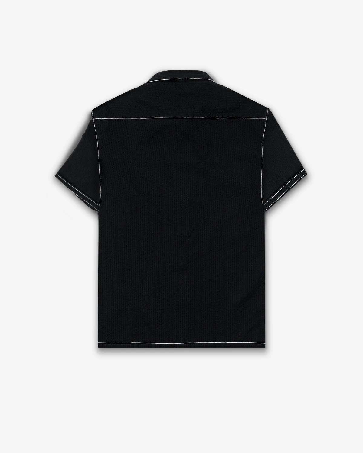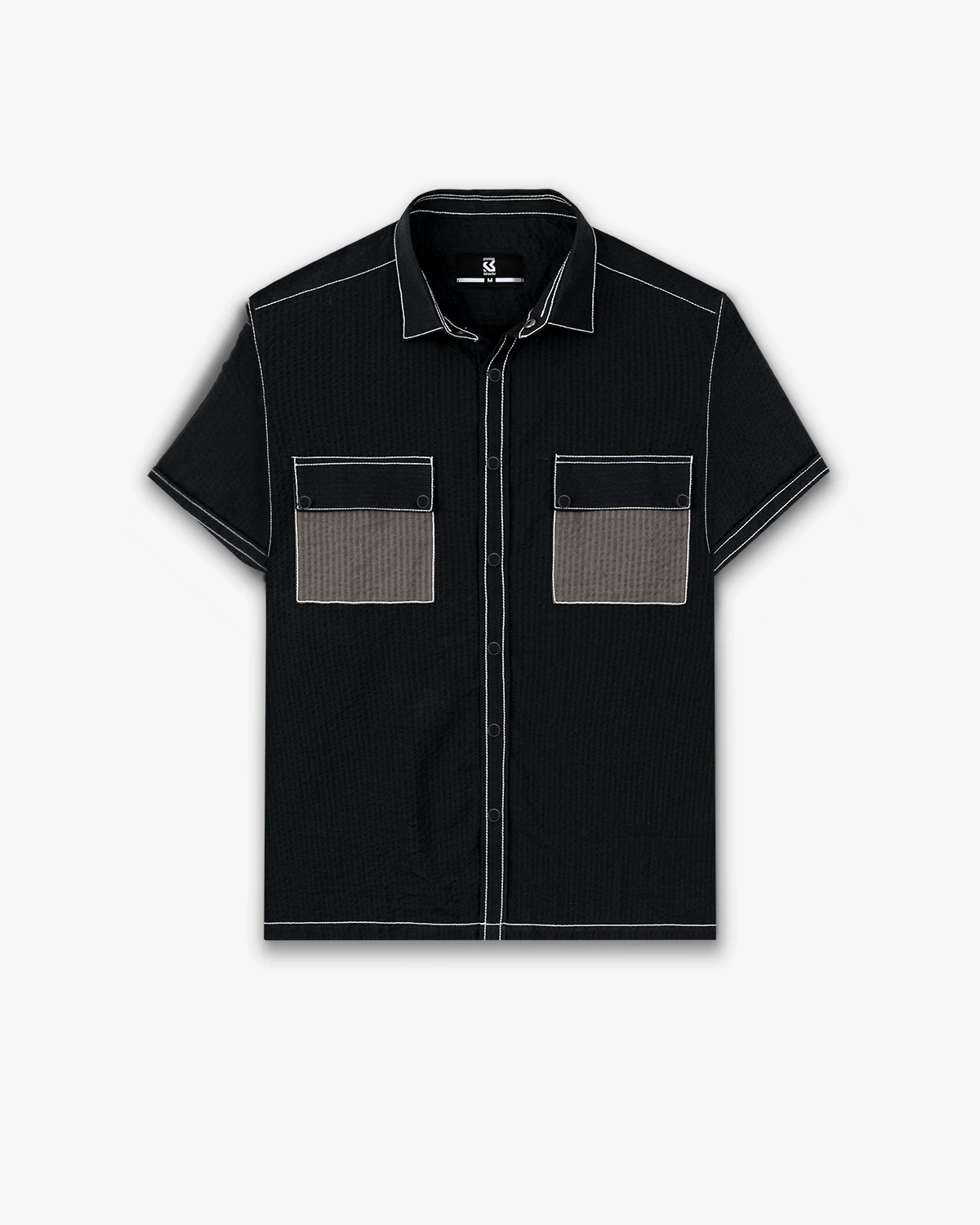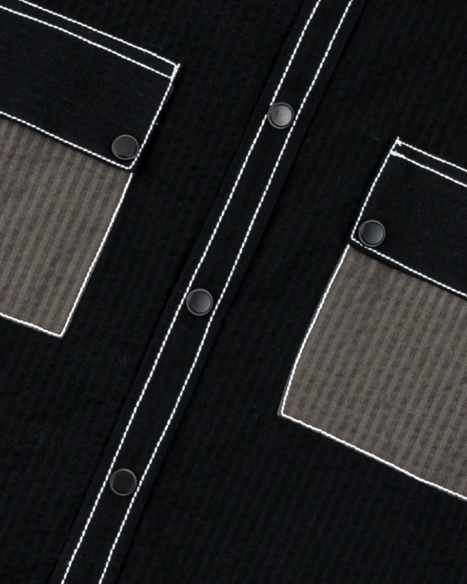 The deep black color of the shirt serves as a versatile backdrop, allowing the texture of the emboss fabric, the heavy snap buttons, and the decorative colored pocket to truly shine. Black is a timeless and sophisticated hue that pairs effortlessly with a wide range of bottoms, from light-colored shorts to darker denim. It’s a color that exudes confidence and style, making this shirt a versatile foundation for your summer outfits.