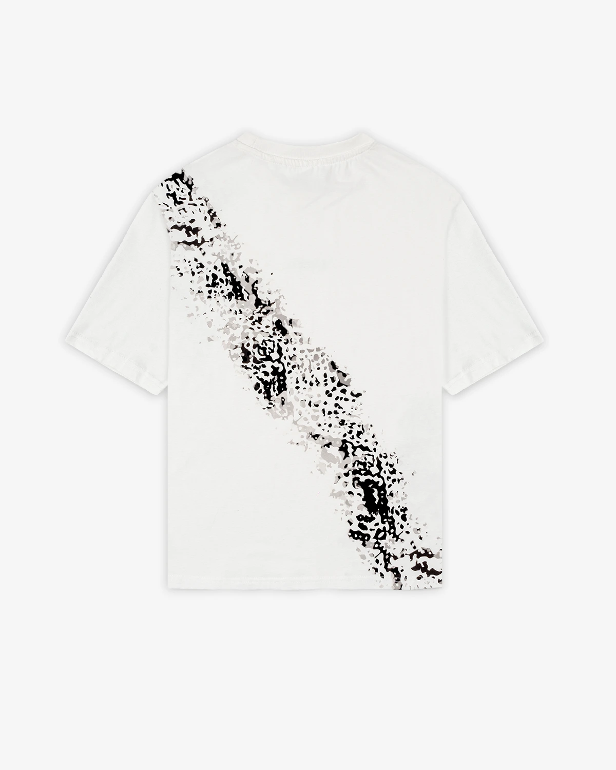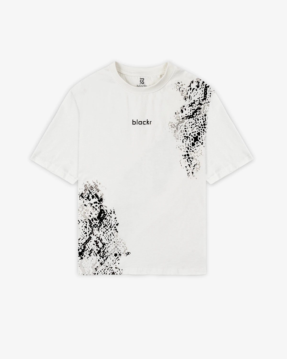 The warm white color serves as a fresh and versatile backdrop, allowing the intricate snake skin print to truly captivate. Warm white offers a clean and modern feel, making the bold pattern even more impactful. This combination of a striking print on a crisp background ensures that this t-shirt will be a standout piece in your collection.