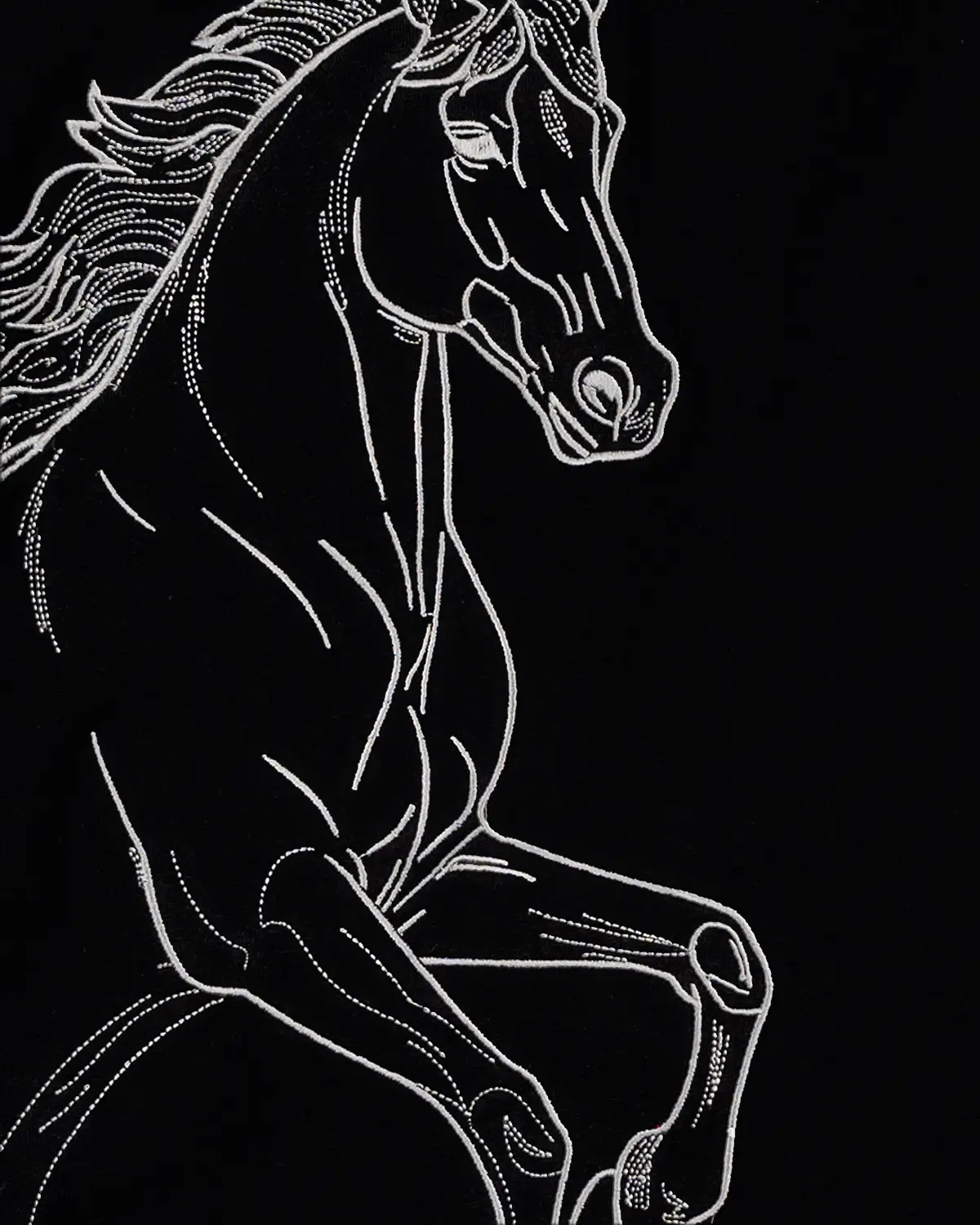 What truly distinguishes this t-shirt are the premium embroidery details. On the back, a dynamic running horse is meticulously embroidered, symbolizing power, freedom, and forward momentum. This intricate artwork adds a striking visual element that is both captivating and meaningful. On the front, the empowering words “win the race” are elegantly embroidered, serving as a personal mantra and a stylish statement of ambition and determination. These premium embroidery details transform an ordinary t-shirt into a piece with character and purpose.